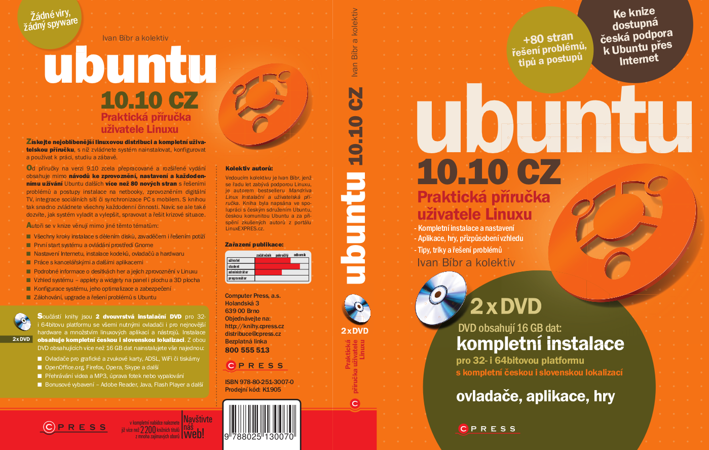 Nová kniha Ubuntu 10.10 CZ už je hotova a od konce listopadu v prodeji. Jako vždy jsme zamakali na obsahu (Lukáš Helebrandt, Jiří Eischmann, Vojta Trefný, Kamil Páral, Milan Kozák + moje maličkost) a text jsme tentokrát řádně rozšířili. Překopány byly zejména kapitoly o instalaci (nový instalátor), vizuální zlepšení (Jirka řádně zaúřadoval). Vše bylo aktualizováno na verzi 10.10. DVD média byla opět vyladěna a upravena stylem wash’n’go (Filip Dominec). Knihu si můžete objednat u českého sdružení Ubuntu, u mne , nebo u Liberixu. Seženete ji také v každém lepším knihkupectví. Detaily o nové verzi rozeberu dále …